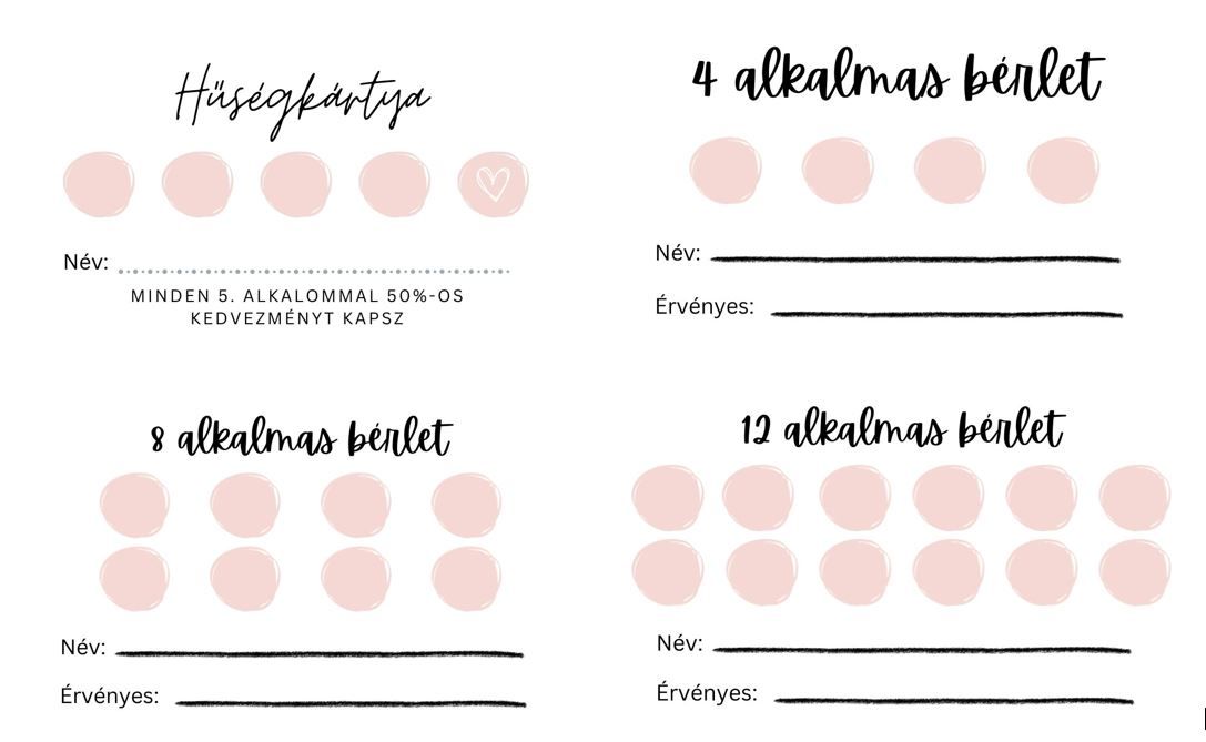 4 alkalmas bérlet: 6.500 Ft (ideális, ha heti 1x tervezel jönni)